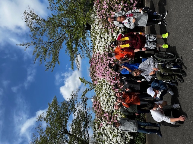4月18日(土)はボランティアさんによる読み聞かせを楽しみ、読み聞かせが終わった後はボランティアさんにいただいた折り紙のカエルで誰のカエルが一番飛ぶのか競争をしました。見てくださいこの真剣なまなざし!午後は福智山方面につつじを見に行きました。満開でとてもきれいでした!